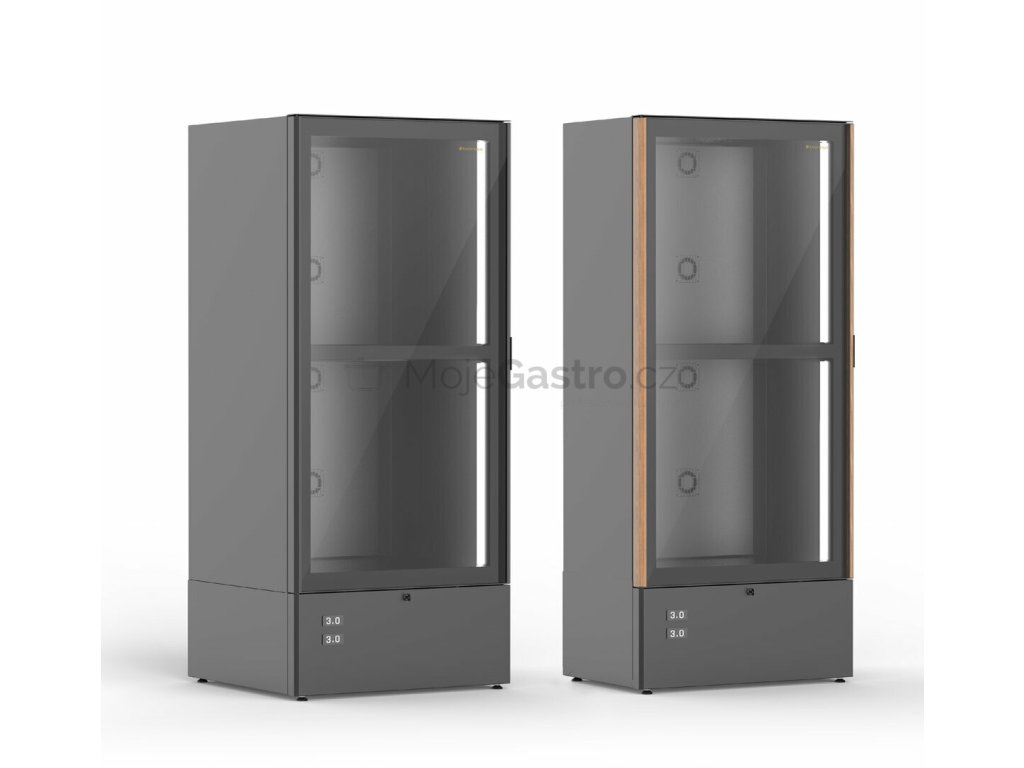 Profesionální dvouzónová vinotéka s plnou hloubkou a výškou, určená pro provozy, kde se spojuje maximální kapacita, přesná regulace teploty a elegantní vzhled. Model M7L_DV je vybaven technologií DUALVENT – dvěma nezávislými chladicími okruhy pro oddělené skladování bílých a červených vín. Dřevěná police dodává vitríně hřejivost, eleganci a podtrhuje její sofistikovaný vzhled. V ceně jsou 2 police na stojící láhve (každá po 65 ks). V případě zájmu je možnost zakoupení i jiných polic. Plášť je vyroben z recyklovaných materiálů, které lze po skončení životnosti opět ekologicky zpracovat.