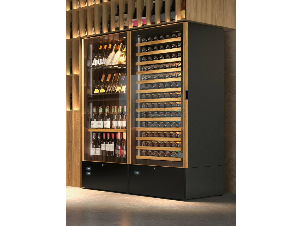 Charakterizována dvěma samostatnými chlazenými a ventilovanými komorami, které umožňují prezentaci bílých a červených vín v jednom zařízení s nezávislou regulací teploty.