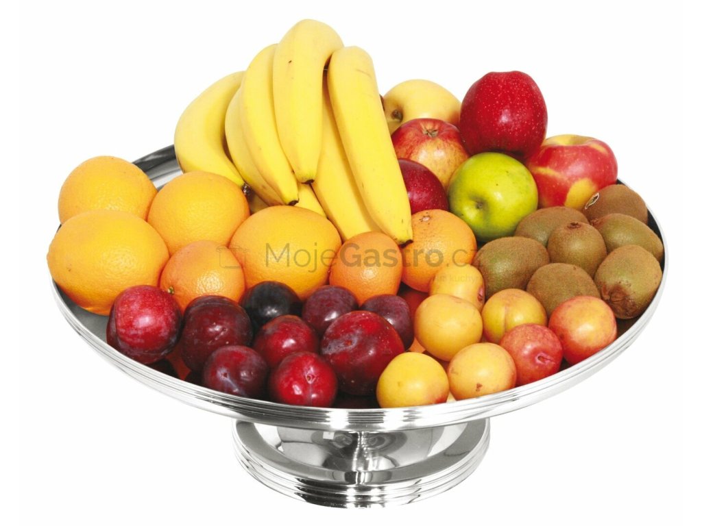 Velká nerezová mísa s podstavou a průměrem mísy 45 nebo 50 cm. Celková výška 19 cm.