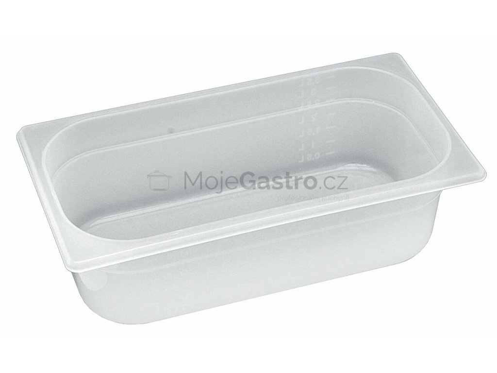 Profesionální polypropylenová nádoba GN 1/3 (325x175, h= 65 mm) o kapacitě 2,5 litru je svým charakterem určená pro široké množství použití v gastronomii. Gastronádoba je stohovatelná, a lze k ní dokoupit víko. rozsah použití: -40 až +80°C