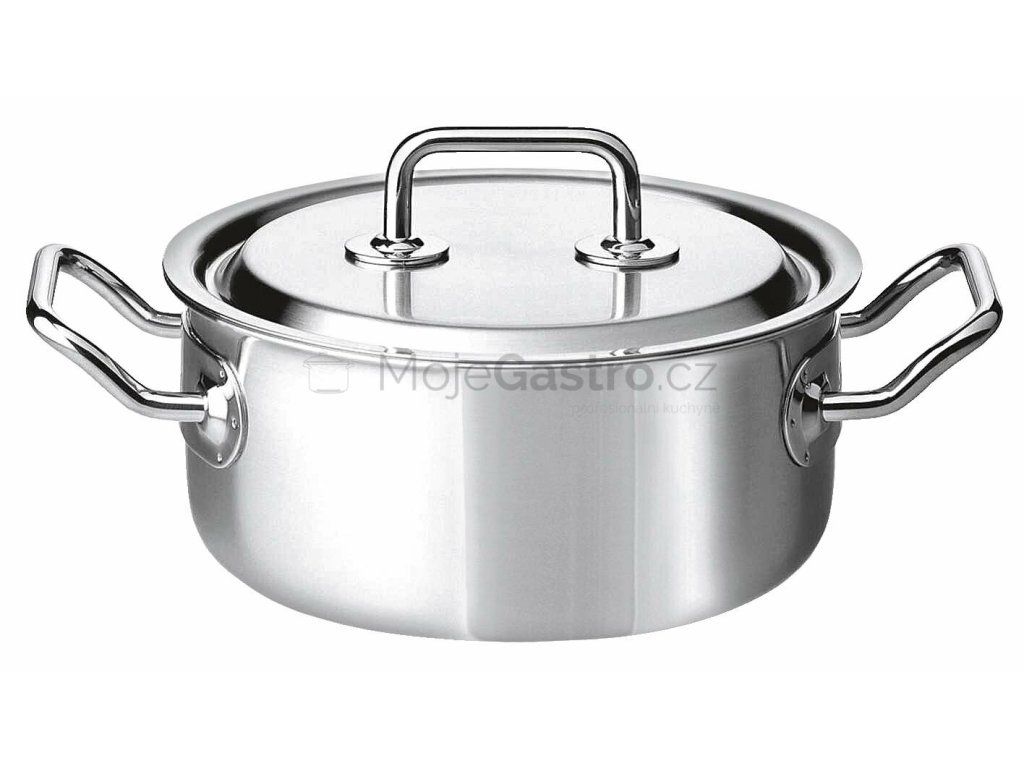 Vybírat můžete z pěti velikostí hrnců s poklicemi (od 1,5 do 9 l), nabízíme i varianty bez poklic. Hrnce jsou kompletně nerezové (vnitřní vrstva 18/10- 18% Chrom, 10% Nikl; vnější 18/0) a lehce vydrží i zátěž velkých kuchyní. Nespornou výhodou jsou velká ucha po stranách i na poklicích – dobře se drží, nerozpalují se ani při delším vaření a jejich zkosený tvar zaručuje pohodlnou a bezpečnou manipulaci. Hledáte sadu hrnců na polévky, guláše, velká masa, vaření zeleniny? Právě jste ji našli.