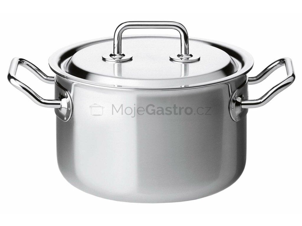 Vybírat můžete z pěti velikostí hrnců s poklicemi (od 1,5 do 9 l), nabízíme i varianty bez poklic. Hrnce jsou kompletně nerezové (vnitřní vrstva 18/10- 18% Chrom, 10% Nikl; vnější 18/0) a lehce vydrží i zátěž velkých kuchyní. Nespornou výhodou jsou velká ucha po stranách i na poklicích – dobře se drží, nerozpalují se ani při delším vaření a jejich zkosený tvar zaručuje pohodlnou a bezpečnou manipulaci. Hledáte sadu hrnců na polévky, guláše, velká masa, vaření zeleniny? Právě jste ji našli.