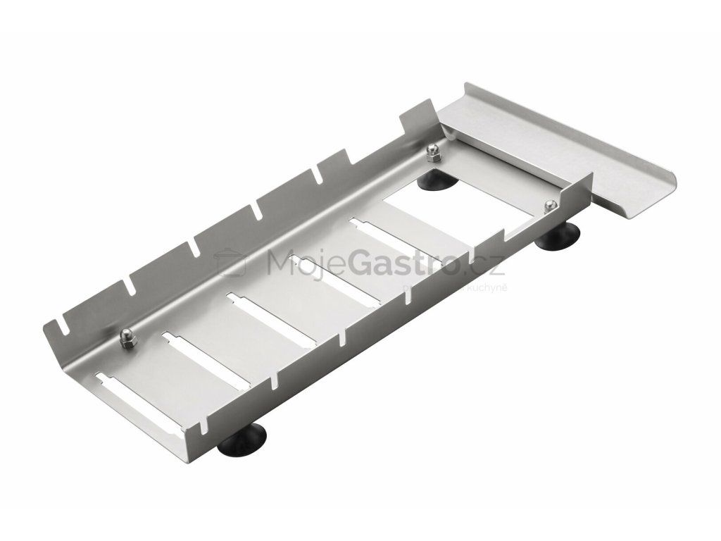 Použití WSE-E: z nerezové oceli pro hygienické a čisté ukládání 5 kotoučů z nerezové oceli a zařízení na krájení kostek WS/E v celonerezovém provedení, rozměry 550 x 290 x 65 mm