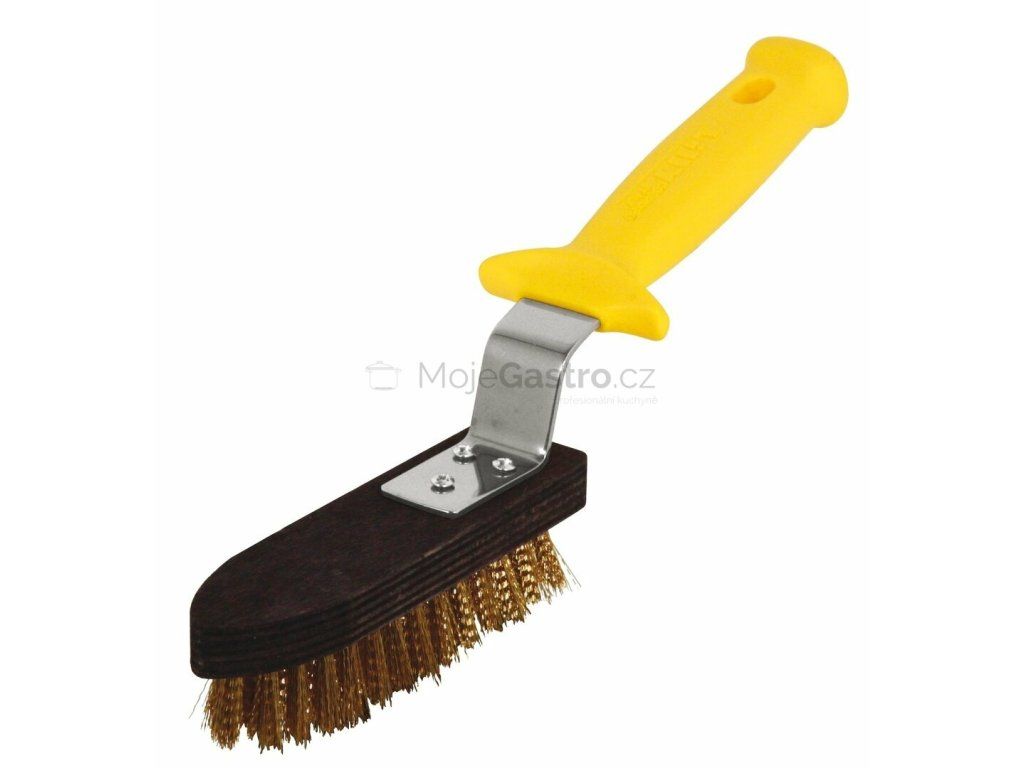 Masivní kartáč na čištění grilů s vyměnitelnými štětinami. Plastová rukojeť, nerezová spojka a mosazné štětiny jsou tou nejúčinější zbraní na váš gril!