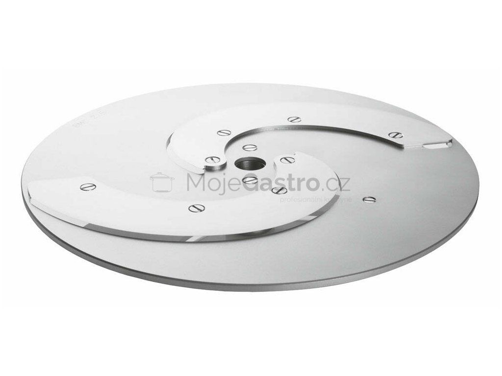 Krájecí kotouče s obloukovitými noži pro krájení okurek, papriky, pomerančů, rajských jablek, žampionů, bulevnin atd. 2,5 mm tloušťka řezu, výkon cca 200 kg/hod 4,0 mm tloušťka řezu, výkon cca 300 kg/hod 6,0 mm tloušťka řezu, výkon cca 400 kg/hod