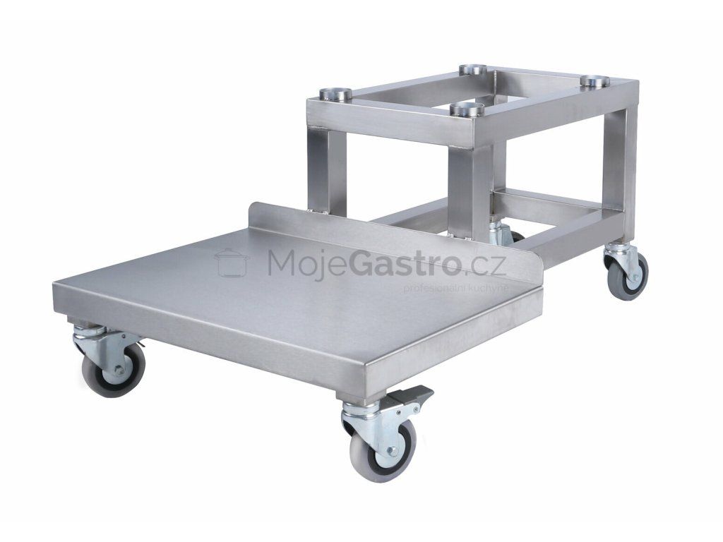 Celý pojízdný podstavec s násypným vrchním stolkem je vybaven čtyřmi kolečky, z nichž dvě jsou bržděná.