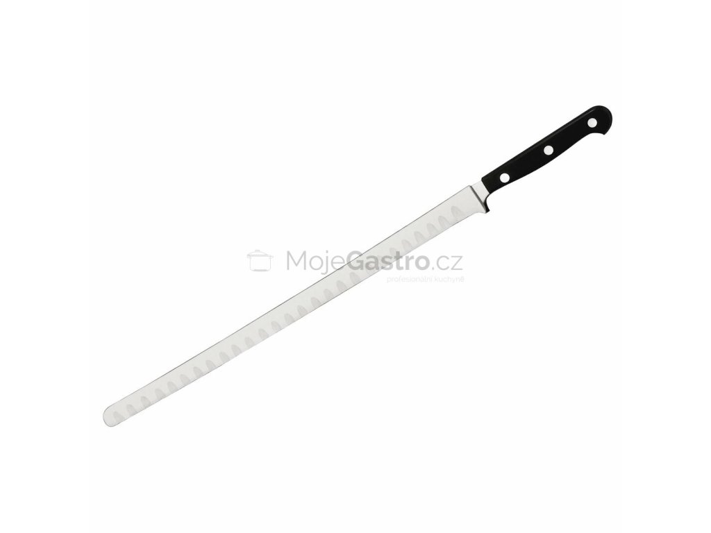 Nože určené pro jemné porcování a opracovávání masa a ryb. Kované provedení nože s nýtovanou plastovou rukojetí a výbrusy v čepeli 310 mm pro nižší přilnavost a snadné krájení bez trhání masa od Giesser. ČEPEL nože vyrobena z jednoho kusu kované...