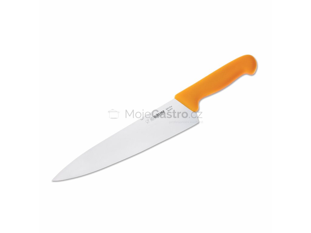 Kuchařský nůž o délce ostří 26 cm s výborným poměrem cena/výkon s pěti různými barvami rukojetí.