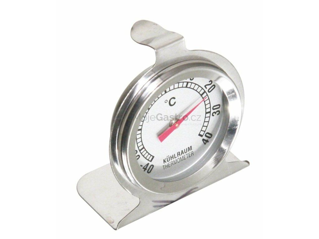 Nerezový bimetalový teploměr s možností postavení nebo zavěšení. Rozsah stupnice je -40 °C až +40. Na objednávku - kalibrace k teploměru (viz. artikl č. 1550901) Výrobek o rozměrech 60x40x60 umožňuje přesné měření teploty v mrazácích a lednicích.