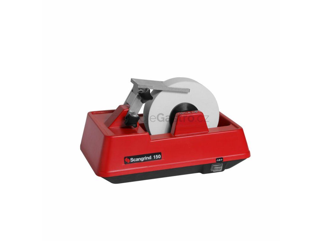 Brus pro mokré broušení. Brusný kámen o průměru 150 mm je namáčen do vody.