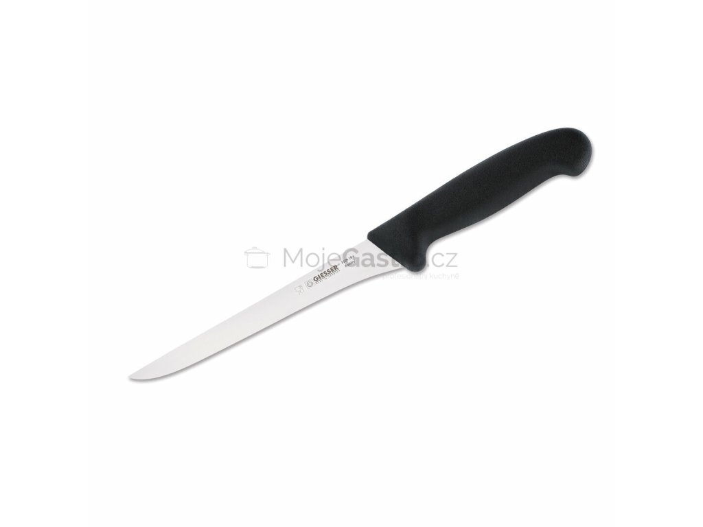 Vykosťovací nůž z ručně broušené nerezové oceli Giesser slouží k přesnému a bezpečnému oddělení kostí od masa. Zakřivení 16 cm dlouhé čepele s delší řeznou hranou a zúženou špičkou umožňuje hladký průchod nože masem ke kosti a přitom odstraňuje i kůži, tuky nebo šlachy. Přesnost řezu předchází vzniku přebytků masa a plýtvání produktem.