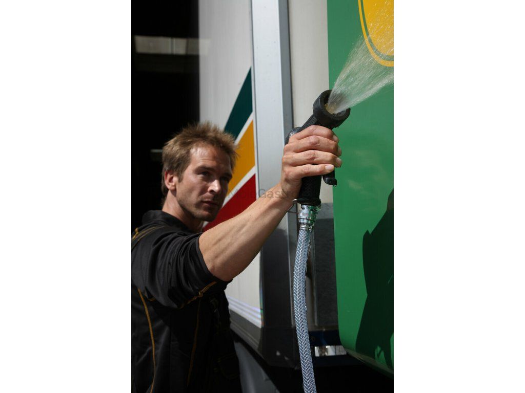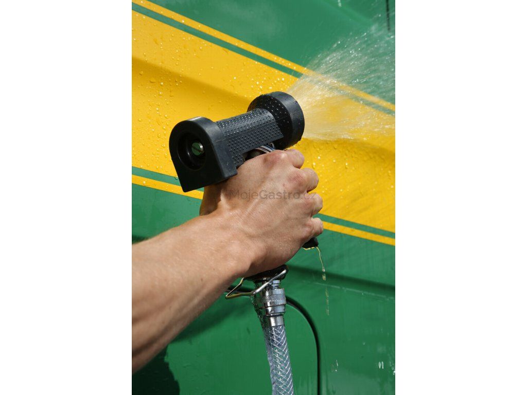 Rozstřikovač tlakové vody z nerezové oceli, mosazi a gumy. Nástroj má mosaznou hadicovou koncovkou. Hodí se pro čištění strojů, podlah, stěn a pracovních povrchů. Rozstřikovač je konstruovaný na tlakovou vodu až 24 bar a teplotu 95 °C.