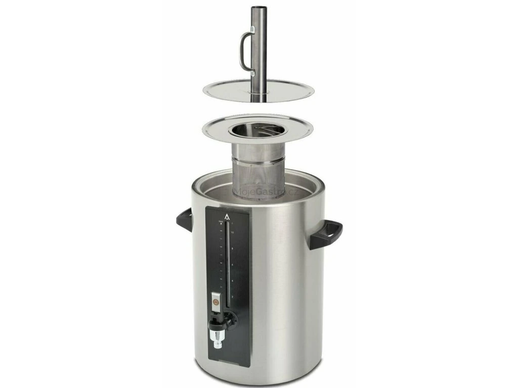 Pro přípravu čaje se do zásobníku (místo filtru na kávu) umístí speciální čajový filtr a plnící potrubí s diskem (sestava se skládá ze 2 artiklů - nutno objednat oba artikly pro daný typ zásobníku)