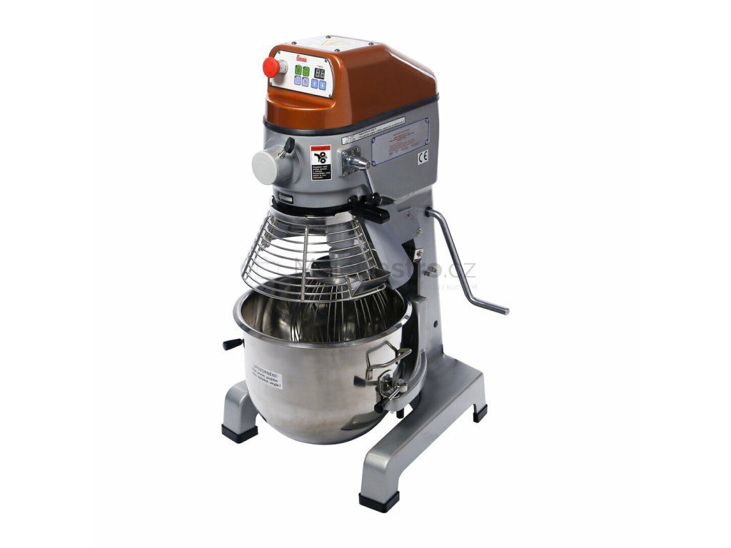 Základní výbava: kotlík 23,75l metla hák míchač nerezový zákryt digitální ovládání s časovačem a signalizací/pulsní volbou český popis stroje Model v provedení (230v) je vhodnější do více namáhaných provozů (zejména na tuhá těsta) - doporučujeme!..