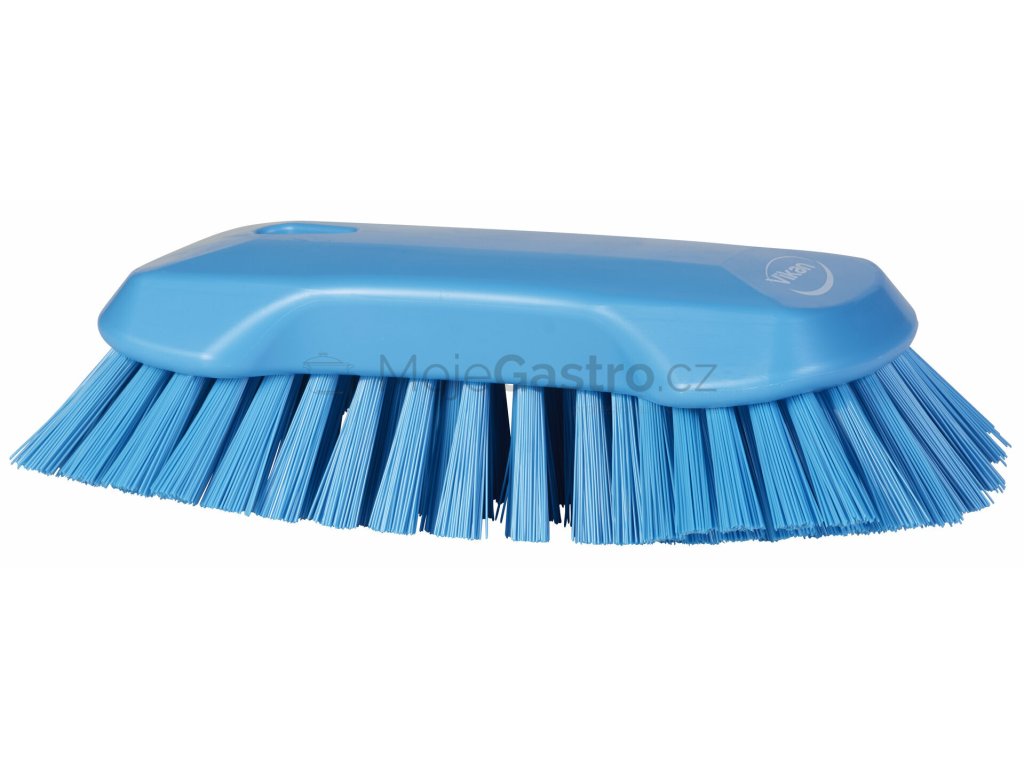 Ruční kartáč XL je velmi oblíbený v masném a mlékárenském průmyslu a díky své velikosti a tuhým štětinám odvádí působivou práci. Pokud potřebujete vyčistit větší plochy s těžko dostupnými rohy nebo mezerami, tento velký kartáč může být právě tím nástrojem, který potřebujete. Robustní kartáč se skládá z pevného bloku 29 mm. Speciální „motýlí tvar“ bloku nabízí uživateli lepší a ergonomičtější úchop. Kartáč sedí v jedné rovině s rukama většiny uživatelů, takže se pohodlně a snadno drží i při manipulaci s čisticími chemikáliemi a s mokrýma nebo mastnýma rukama. Stejně jako všechny kartáče z naší hygienické řady je i ruční kartáč Vikan XL navržen pro použití v oblastech, kde jsou vyžadovány nejvyšší standardy čistoty a hygieny. To z nich dělá ideální čisticí nástroj pro potravinářský průmysl. Hladký povrch, absence ostrých hran a šikmý, vypouštěcí otvor pro zavěšení usnadňují čištění a skladování. Ať už čistíte nádrže, stoly, dopravní pásy nebo kbelíky, ruční kartáč XL s extra tuhými štětinami vám pomůže dokončit práci rychle a efektivně.