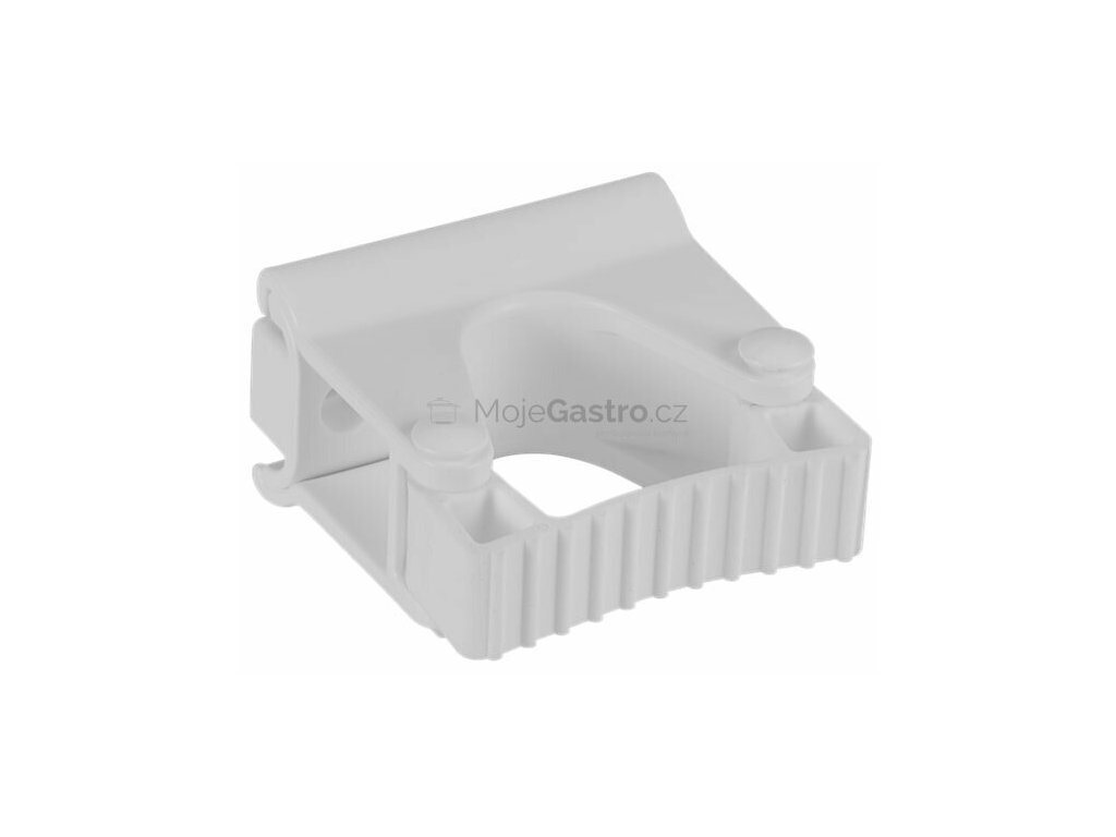 Svorka k nástěnnému držáku, bílá, je inovativním prvkem, který vám umožní efektivně uskladnit čisticí nástroje a potřeby v jakémkoli prostoru vašeho pracoviště. Tato svorka je navržena s ohledem na hygienu a praktičnost, aby poskytla flexibilní řešení úložného prostoru.