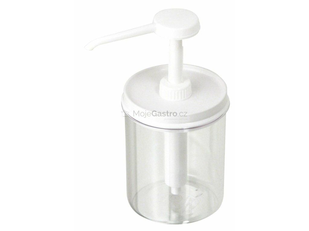 Základní plastový dávkovač s čirou polykarbonátovou nádobou. Velikost dávky cca 20 ml.