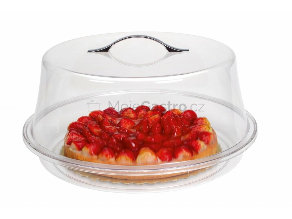 Polykarbonátový tác a poklop s madlem. Rozměry: Ø350 mm Výška: 120+40 mm