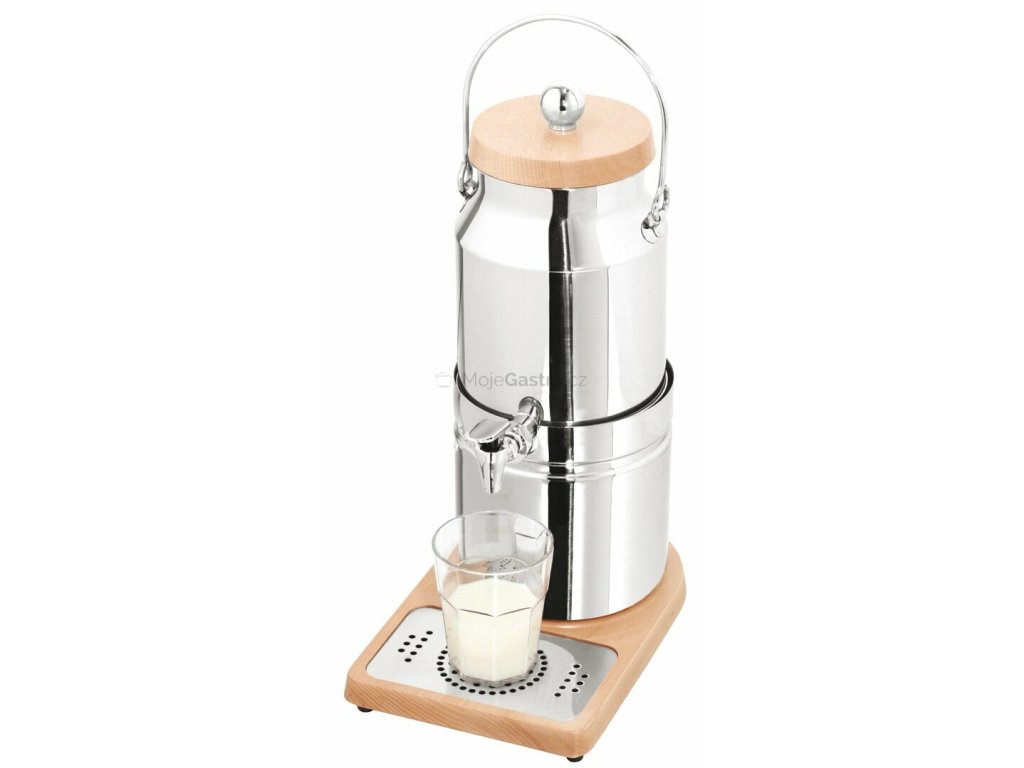 Zásobník na mléko v exkluzivním nerezovo-dřevěném provedení. Objem 3 l, plocha na odkap.