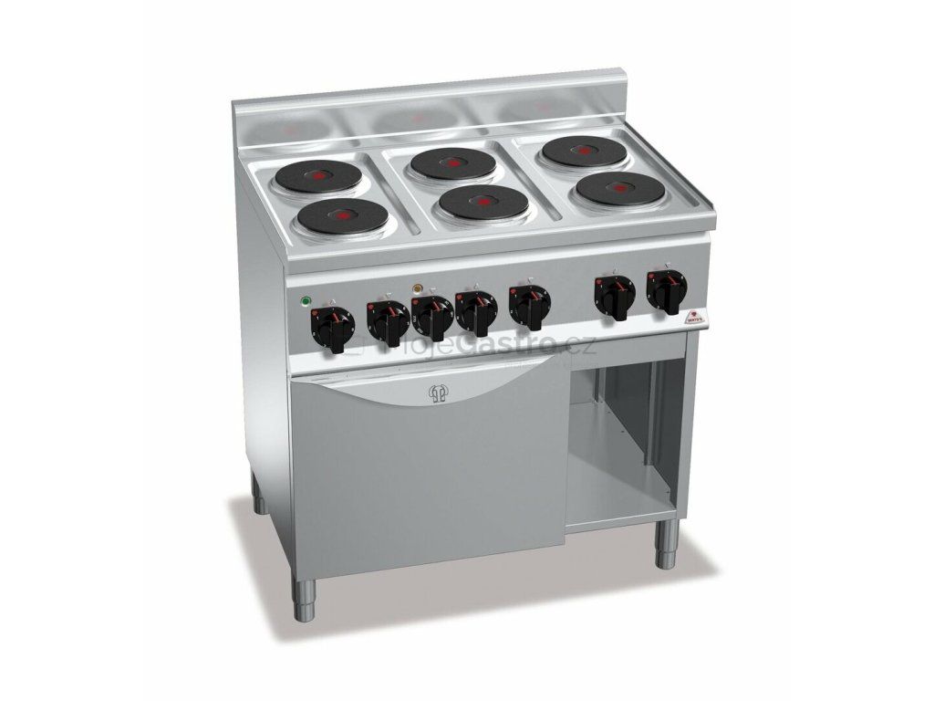 Elektrické sporáky jsou vybaveny kulatými litinovými plotnami Ø 180 mm a výkonem 2 kW. Teplota je regulována nezávisle nastavitelnými spínači. Elektrická konvekční trouba vhodná pro GN 1/1 s kvalitním těsněním dveří.
