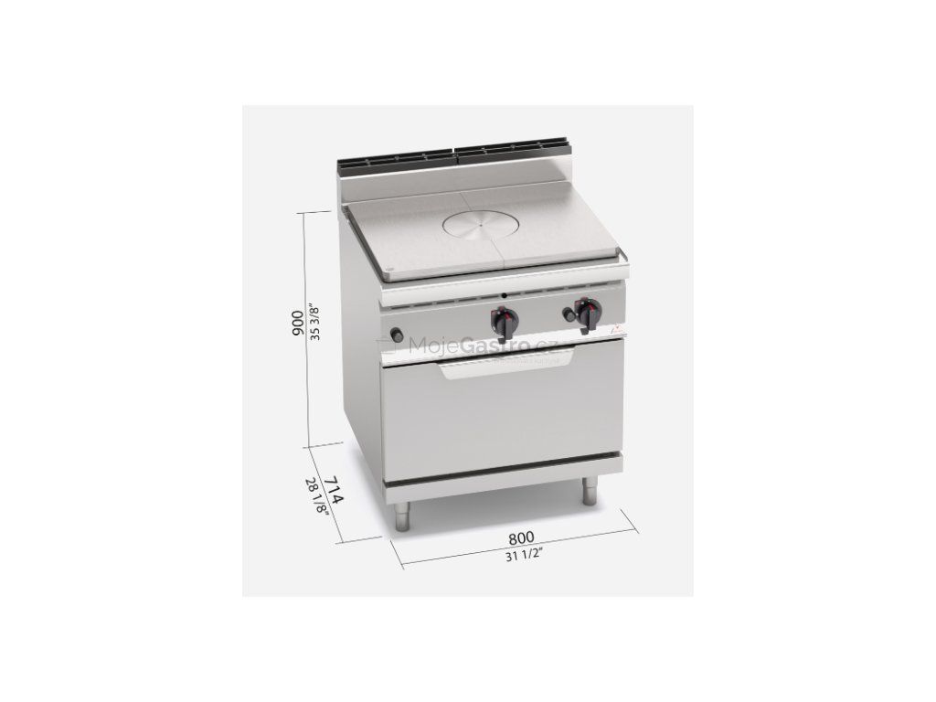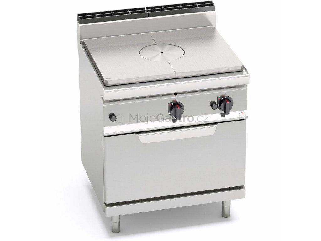Vařící plotna je vhodná pro přípravu velmi chutných pokrmů z tradiční kuchyně. Nepřímé zásobování teplem je vhodné zejména při přípravě omáček a pokrmů, které potřebují pomalé vaření při konstantní teplotě. Je velká se zcela hladkým povrchem, který tak usnadňuje použití široké škály druhu nádobí a zaručuje snadnou čistitelnost. Vnitřní žáruv-zdorná izolační vrstva s maximální schopností usměrnění tepla, které je soustřeďováno na střed plotny a nabízí tak vynikající komfort a bezpečnost při vaření. Plynový sporák s ocelovou plotnou velké tloušťky s rozdílnými oblastmi teplot: max. teplota na středu, klesající na okrajích. Ohřev zajišťuje střední litinový hořák 13kW s regulací výkonu. Zapalování hořáků věčným plamínkem. Kompaktní provedení s otevřeným podstavcem. Plynová trouba pro GN 2/1. Nerezové provedení s oblými rohy.