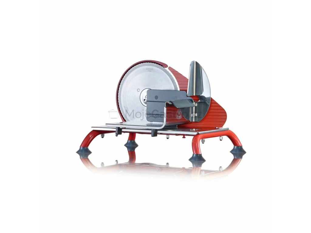 Červená varianta ručního retro kráječe s dřevěnou klikou, který se perfektně hodí ke krájení chleba s tvrdou kůrkou, masa a sýrů. Tloušťku krájení 0–15 mm lze pohodlně nastavit. Ochrana palce zvyšuje bezpečnost při krájení. Díky kvalitnímu provedení se výrobek snadno čistí a čtyři pogumované nožičky zajišťují stabilitu. Čistý design z dílny německého výrobce navíc skvěle doplní vzhled kuchyně. Váží 2,72 kg.