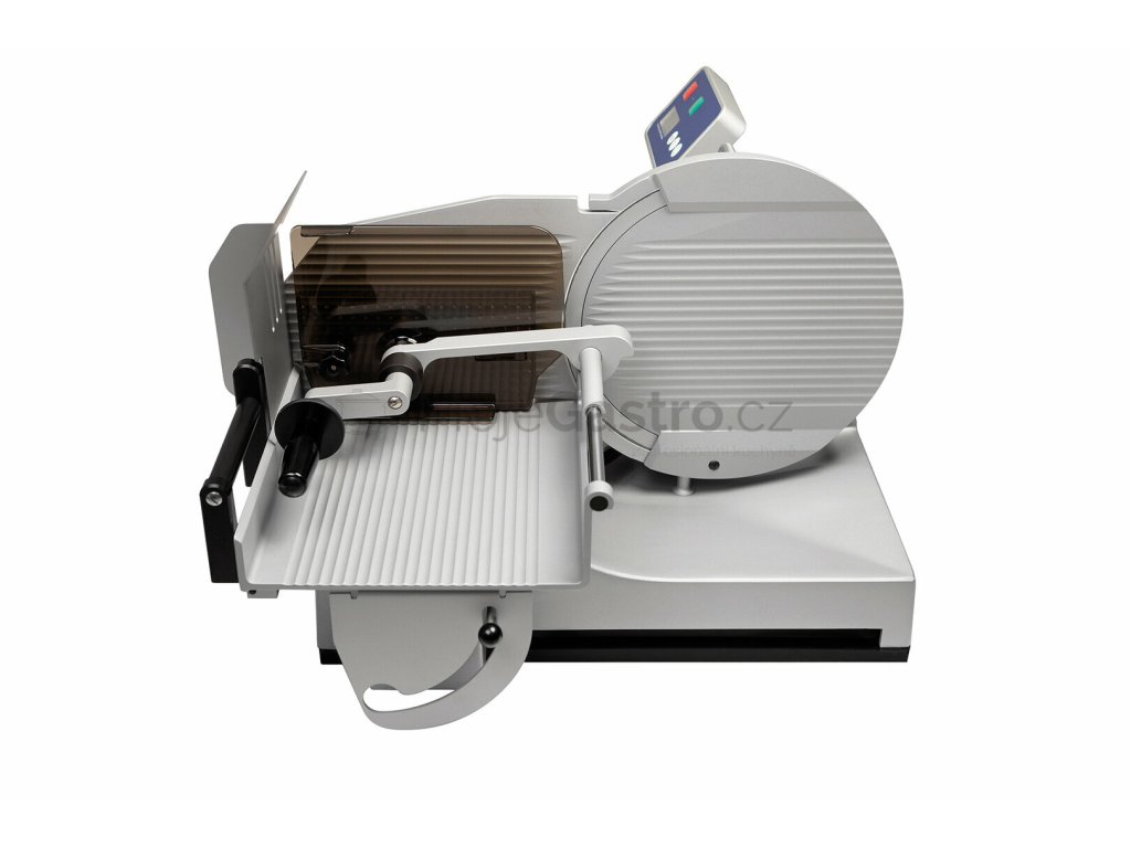 Profesionální nářezové stroje Graef linie MASTER CERA3 v hliníkovém provedení se speciálním keramickým nepřilnavým povrchem CERA3 (kompletní opláštění včetně vozíku a nože). Všechny komponenty lze snadno demontovat bez nutnosti použití speciálního nářadí. Pohon stroje je zajišťován šnekovým převodem s výkonným bezúdržbovým vzduchem chlazeným motorem. Ke stroji je dodáváno speciální výkonné brusné zařízení. Přesné nastavení síly řezu a uchycení produktu na vozíku s odlehčeným pojezdem pro velice snadné krájení. Bezpečné voděodolné piezzo ovládání s odolnými spínači. Podstava stroje je vybavena protiskluzovou gumou zamezující nechtěnému pohybu stroje a usazování nečistot pod zařízení.