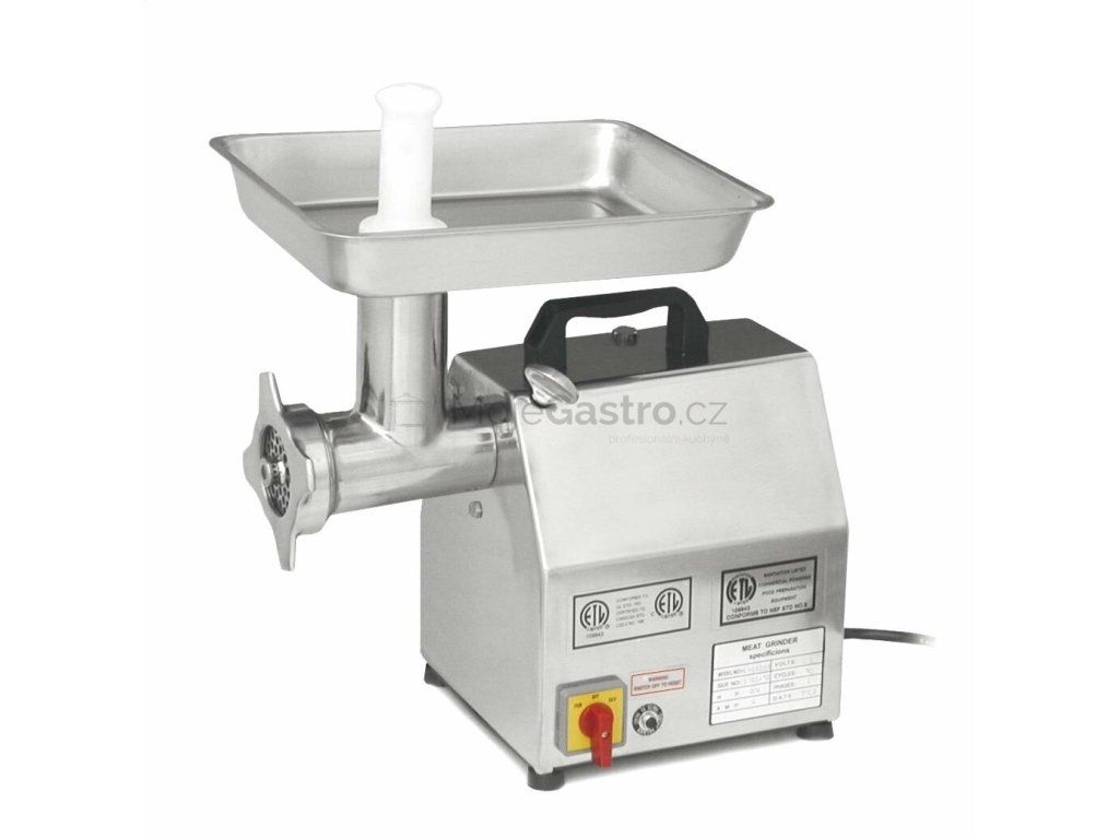 Řezačka se dá rychle a bezpečně vyjmout. V základu stroje je kromě 4-břitého nože také 6 mm a 8 mm deska a plastová plnicí tlačka 20 mm. Pohon je zajišťován napájením 230 V a příkonem 562 W. Řezačka je vyrobena z nerezu. Pro mletí používejte maso bez kůží a kostí nakrájené na menší kusy. Splňuje vysoký hygienický standard. Hodí se do gastronomických provozů a obchodů.