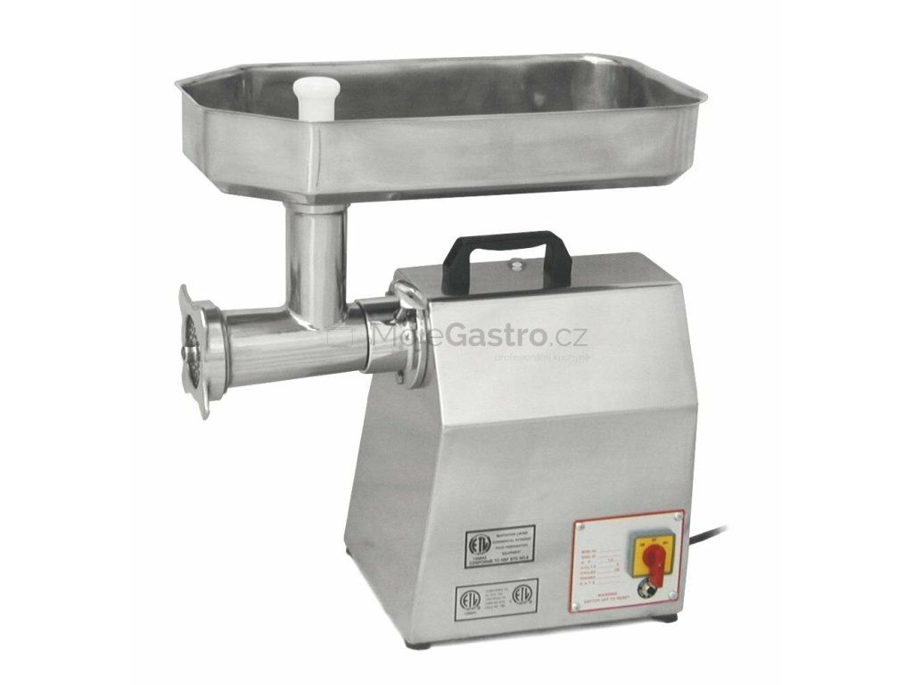 Řezačka se dá rychle a bezpečně vyjmout. V základu stroje je kromě 4-břitého nože také 6 mm a 8 mm deska a plastová plnící tlačka 20 mm. Pohon zajišťuje napájení 230 V s příkonem 1125 W. Řezačka je nerezová. Pro mletí používejte maso bez kůží a kostí nakrájené na menší kusy. Před údržbou odpojte zařízení z elektrické sítě. Hodí se do gastronomických provozů a obchodů.