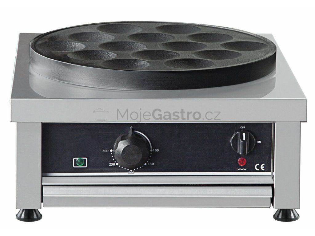 Plotna na lívance PC 40 E - robustní celonerezové provedení s vysokým výkonem. Plotna je schopna najednou připravit až 14 chutných lívanců o velikosti Ø80 mm. Litinová plotna s důlky (litina je ideální pro rychlý přenos tepla), umožňuje rychlé vytápění a udržení konstantní smažící teploty ideální pro dané těsto (doporučená max. pracovní teplota 270° až 280 °C). Funkční design se snadným ovládáním a bezpečným provozem. Přesná regulace teploty ohřevu s kontrolkou chodu a nahřátí.