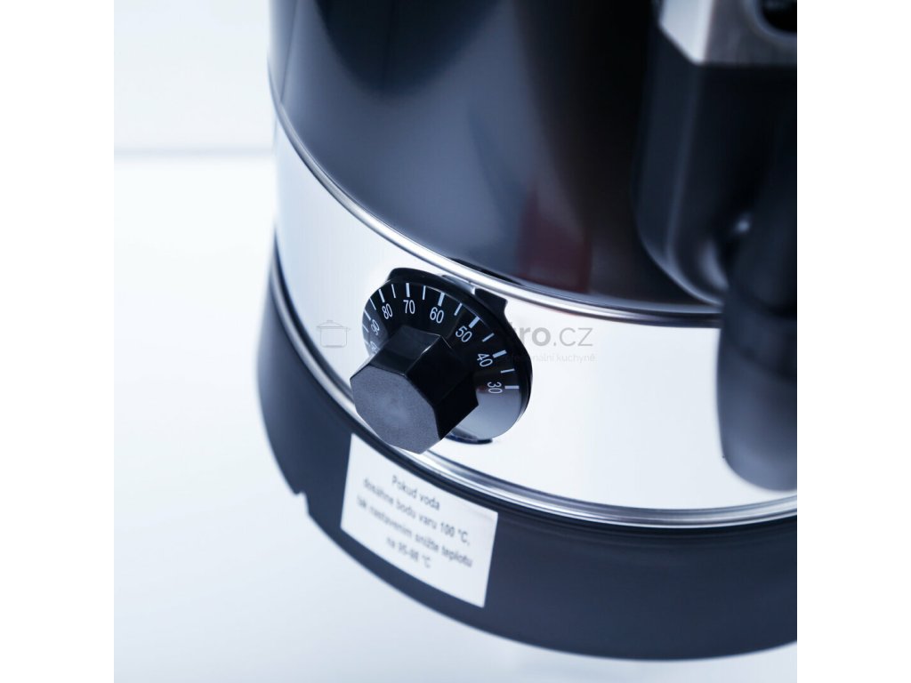 Automatické varné a udržovací termosy na přípravu a udržení horké vody a teplých nápojů. Elegantní celonerezové, dvouplášové, izolované provedení (minimální teplotní ztráty = ekonomický provoz), tělesa jsou skryta pod nerezovým dnem (snadné čistění a údržba). Automatický systém výroby horké vody, nebo udržení připravených nápojů na požadované teplotě. Výdej nápoje automatickým výpustným kohoutem a množství nápoje v termosu je přehledně indikováno na rysce hladinoměru. Snadné nastavení varné, udržovací, nebo výdejní teploty mechanickým termostatem (rozsah termostatu 30-100°C), vybaven centrálním vypínačem, kontrolkou chodu a nahřátí. Nerezové bezpečnostní víko s ergonomickým bezpečným plastovým madlem.
