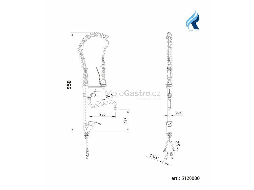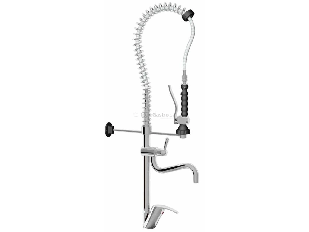 Model se směšovací pákovou baterií pro studenou, teplou vodu a napouštěcím ramínkem ze sprchy v robustním provedení, v=900 mm. tlakovou sprchou STAR tlakovou hadicí a vyvažovací pružinou závěsným háčkem pro sprchu pákové přepnutí vody do ramínka...