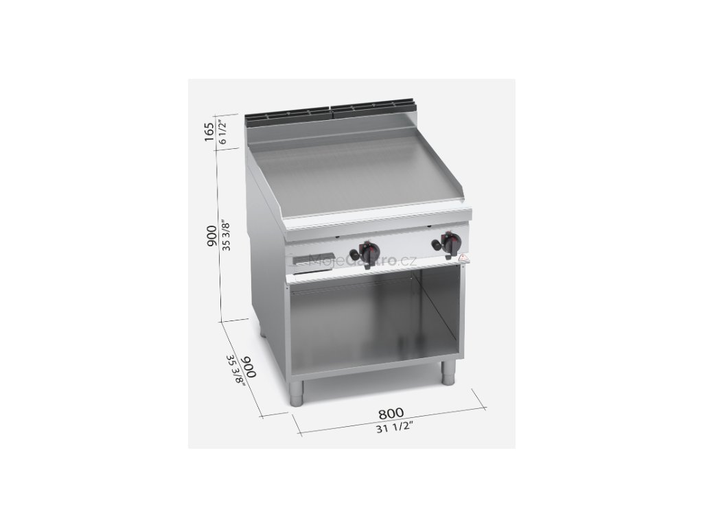 Termostatický ventil 30 až 300°C pro přesnou a bezpečnou regulaci. Termočlánek a chráněný zápalný plamínek. Deska je hladká, rýhovaná nebo kombinovaná, zvýšené postranní lemy. Kompaktní provedení s otevřeným podstavcem...
