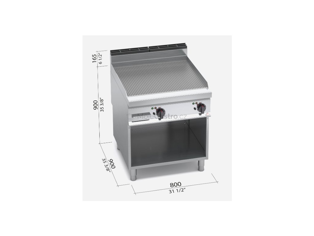 Topné těleso je umístěno pod grilovací plotnou. Deska o velké tloušťce s hladkým (rýhovaným) povrchem z oceli a zvýšenými postranními lemy. Kompaktní provedení s otevřeným podstavcem. Kompletní sortiment plynových a elektrických ploten s různým prove