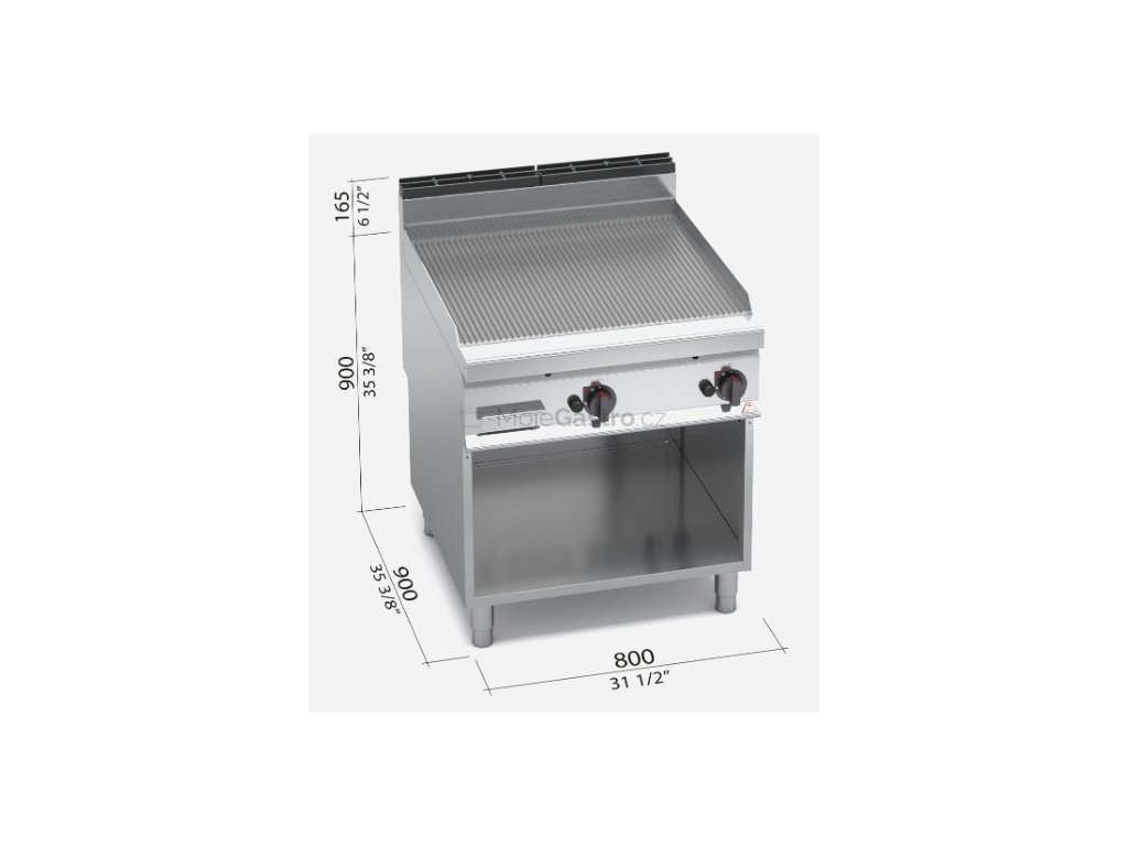 Termostatický ventil 30 až 300°C pro přesnou a bezpečnou regulaci. Termočlánek a chráněný zápalný plamínek. Deska je hladká, rýhovaná nebo kombinovaná, zvýšené postranní lemy. Kompaktní provedení s otevřeným podstavcem...