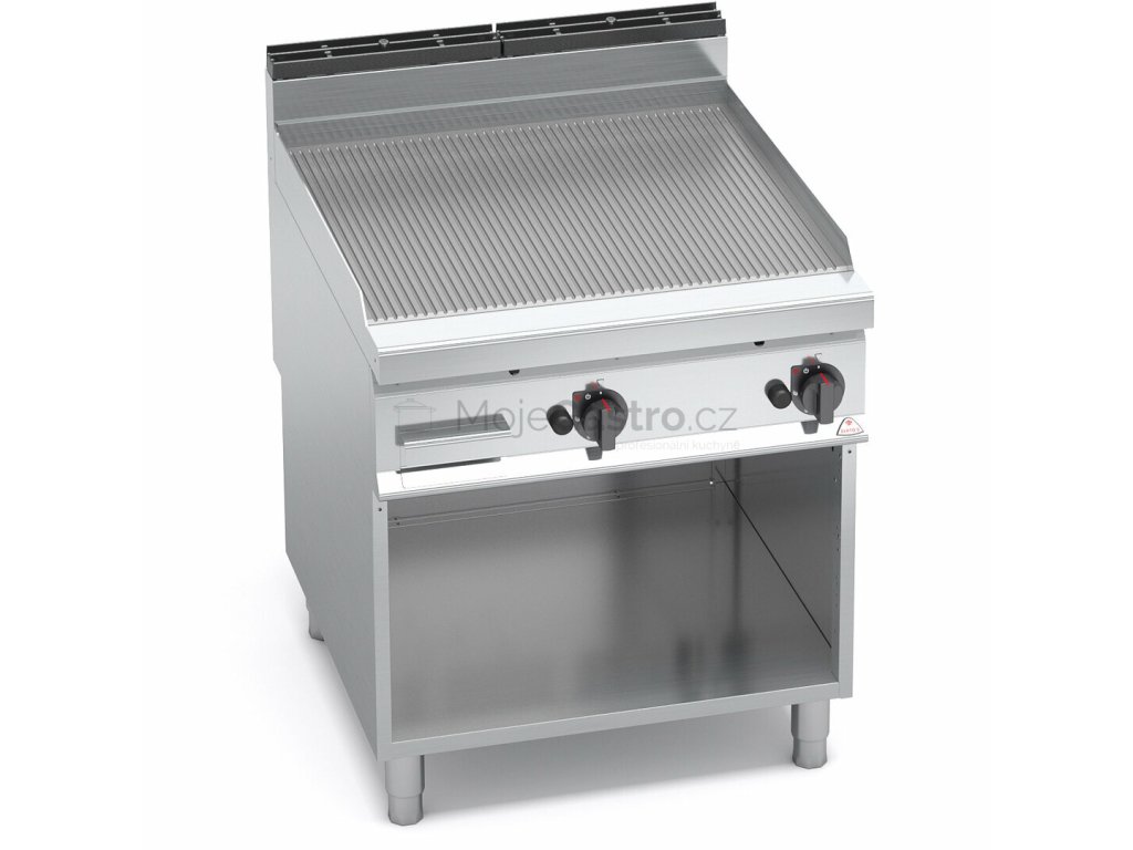 Termostatický ventil 30 až 300°C pro přesnou a bezpečnou regulaci. Termočlánek a chráněný zápalný plamínek. Deska je hladká, rýhovaná nebo kombinovaná, zvýšené postranní lemy. Kompaktní provedení s otevřeným podstavcem. Kompletní sortiment plynových a elektrických ploten s různým provedením grilovací plochy. Lze na nich připravovat pokrmy tzv. "kontaktem" a to nejcitlivějším způsobem. Jednotný systém distribuce tepla zaručuje rovnoměrné grilování po celé pracovní ploše, velké energetické úspory a zlepšení pracovního prostředí. Při grilování se přirozeně tvoří zbytkový olej, který je odváděna shromažďován ve velké odpadní nádobce.