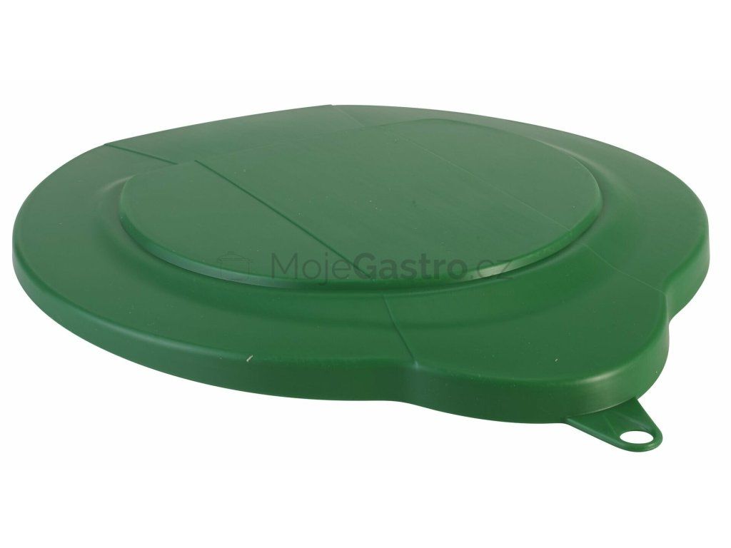 Víko z polypropylenu k vědru Vikan 56862 pro zamezení vniknutí nečistot do skladovaných látek. Prolis na víku umožňuje stohování věder.
